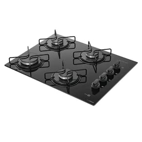 A versão 4 bocas possui 3 queimadores de 1,65 kW, 1 queimador Mega Chama de 2,85 kW e medidas 58 x 11 x 46 cm (largura x altura x profundidade).