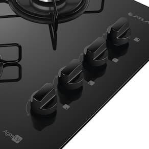 Cooktop 4 bocas Atlas Agile Up com mesa de vidro temperado, acendimento superautomático e trempes individuais de arame com 4 pontos de apoio. Bivolt.Alimentação