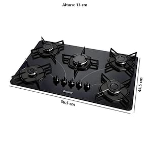 - 5 Bocas/Queimadores: (1 Queimador Central de 3000W de Potência e 4 Queimadores de 1750W de Potência)