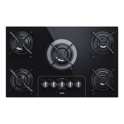 Descubra a sofisticacao e praticidade do Cooktop Consul a Gas, projetado para transformar sua experiencia na cozinha. Com um design elegante em preto e acabamento em vidro, este cooktop se destaca nao apenas pela estetica moderna, mas tambem pela eficiencia e facilidade de uso. Com cinco bocas, sendo duas grandes, duas pequenas e uma media, ele oferece versatilidade para preparar desde refeicoes rapidas ate pratos mais elaborados, garantindo estabilidade para suas panelas e um cozimento uniforme.