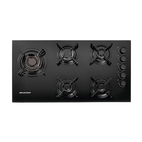 Cooktop Brastemp 5 bocas com Quadrichama, grades de ferro piatina, mesa de vidro temperado e acendimento superautomático.Luz de calor residual