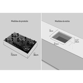 Bonito e moderno: Facilita o dia a dia, com detalhes que chamam atenção.4 e 5 bocas com Tripla Chama: Mais rapidez para suas receitas.As panelas ficam firmes e seguras: Grades individuais de ferro fundido com 4 pontos de apoio.Vidro temperado: Resistente, seguro e fácil de limpar.Queimadores selados: Impede a sujeira, garantindo melhor cozimento.Botões removíveis: Fáceis de tirar e limpar.Acendimento Girou Acendeu: Simples, rápido e seguro.