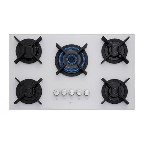 Características: Mesa de vidro temperado Suporte da trempe em easy clean Trempe individual com novo design em ferro fundido e melhor encaixe para as panelas Manipuladores -botões- de nylon Queimadores com tecnologia italiana de alta eficiência e durabilidade -SABAF- 5 queimadores: 1 queimador tripla chama -3700W-, 1 queimador rápido -3000W- e 3 queimadores semirrápidos -1630W- Câmara de gás fechada: a chama não se apaga com facilidade Fundo compacto, otimiza o espaço do armário/nicho Acendimento superautomático Produto Certificado pelo INMETRO -Portaria 400- Produto Bivolt
