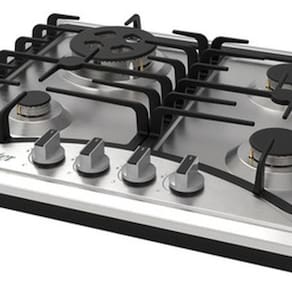 Cooktop a gás Inox com 4 bocas, sendo um queimador ultra rápido com tripla chama de 4000W, dois médios de 1750W e um auxiliar de 900W, totalizando 8400W. Acendimento automático e sistema Flameout Safety.Luz de calor residual