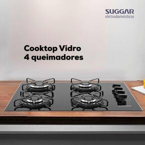Cooktop A Gás 4 Bocas Vidro 55x46 Bivolt Preto Suggar Preto Que suas preparacoes sejam um sucesso! Com este cooktop da Suggar, voce fara brilhar seus talentos gastronomicos. Uma cozinha que se adapta a sua vida. Com a sua ignicao automatica, voce podera liga-lo de maneira rapida e facil. Qualidade e elegancia aqui! Dimensoes: Altura: 9 cm | Largura: 55 cm | Profundidade: 46 cm