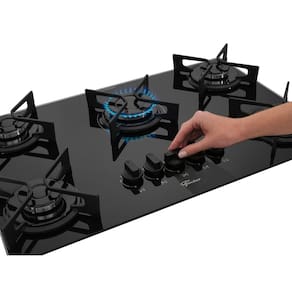 -Mesa em vidro temperado preto: elegante e fácil de limpar -5 bocas para maior versatilidade no preparo de receitas -Trempes Iron esmaltadas: robustas, leves e estáveis -Queimadores italianos: alta eficiência e durabilidade -Acendimento superautomático: praticidade no uso diário -Manipuladores ergonômicos: conforto no manuseio -Câmara de gás fechada: segurança e otimização de espaço -Acabamento EasyClean: limpeza facilitada -Design moderno e funcional -Classificação energética AAlimentação
