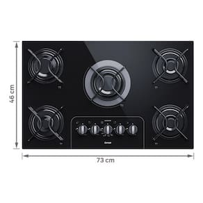 Cooktop Consul a gás com 5 bocas, design moderno, acendimento automático e materiais de alta qualidade (aço e vidro preto).Luz de calor residual