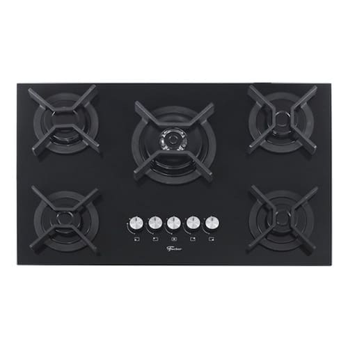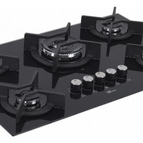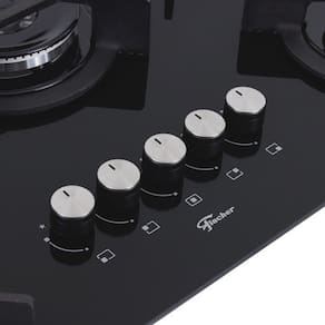 Cooktop Fischer Infinity a gás com 5 bocas, vidro preto, bivolt, acendimento automático e dimensões de 76x48cm.Alimentação