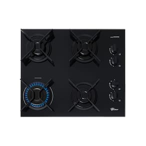 Cooktop a Gás Fischer 4 Bocas Fit Line Trempe Iron com mesa de vidro temperado e trempes esmaltadas.Luz de calor residual