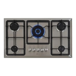 A mesa em aço inox escovado confere ao fogão cooktop Fischer 5 Bocas Tripla ChamaLuz de calor residual