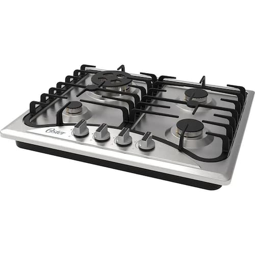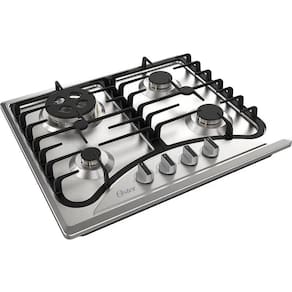 Cooktop Semiprofissional Oster com alta durabilidade e alto desempenho. Queimadores de origem italiana com sistema Flameout Safety protection. Estrutura de saída de gás padrão de Gás de Botijão (GLP), com possibilidade de conversão para Gás Natural (GN).Luz de calor residual
