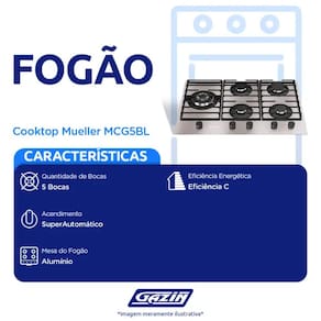Cooktop a Gás Mueller MCG5BL 5 Bocas Superautomático Mesa de Alumínio