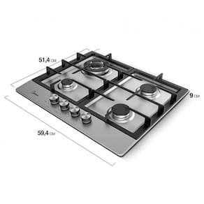 4 bocas, mesa em inox, grades de ferro fundido, acendimento automático, botões removíveis.Luz de calor residual