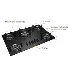 Cooktop a Gás Mueller MCG5BC 5 Bocas Mesa de Vidro Tripla Chama - Bivolt