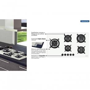 Com o Cooktop a Gás Tramontina Penta Side Plus 5GG W Tri 90 em vidro temperado branco com trempes em aço carbono e acendimento superautomático, 5 queimadores, da linha Perfecta, sua cozinha ganha ainda mais beleza e funcionalidade para o preparo das receitas do dia a dia. Para facilitar o uso, o acendimento superautomático permite que a chama se acenda ao simples girar do manípulo, oferecendo praticidade em cada uso. Ele conta com queimador tripla chama deslocado, que garante maior rapidez no cozimento e melhor aproveitamento do espaço com o uso de panelas maiores. As trempes individuais são em aço carbono esmaltado com apoios em borracha, proporcionando mais e estabilidade durante o preparo. Já os manípulos são em baquelite, material que não aquece e oferece maior resistência ao calor, protegendo suas mãos no manuseio. Um cooktop moderno e eficiente, que se adapta perfeitamente ao ambiente da sua cozinha.