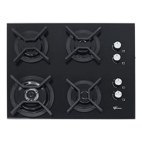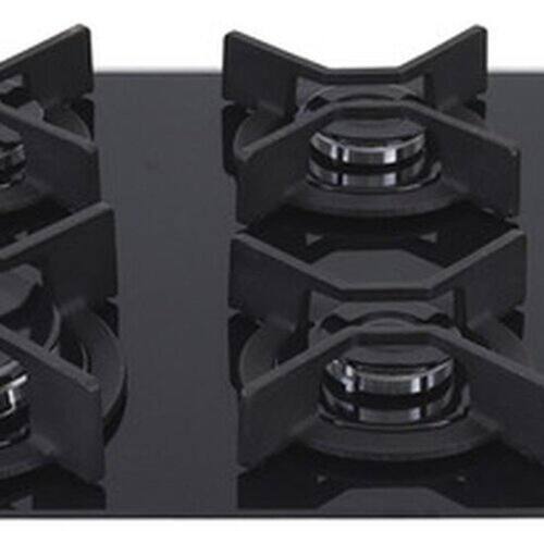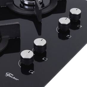 Cooktop Fischer Infinity a gás com 4 bocas, acabamento em vidro preto, acendimento automático, compatível com gás natural e GLP, e bivolt.Luz de calor residual