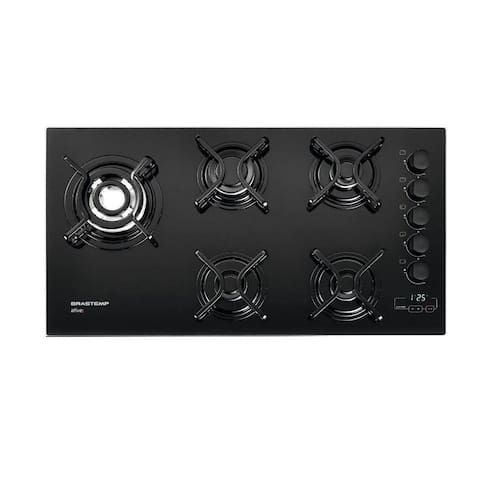 | Touch Timer | Mesa com design inteligente A quadrichama deslocada do centro para a lateral da mesa proporciona mais espaço entre as chamas e permite o uso de panelas maiores, oferecendo maior conforto no preparo das suas receitas. | Exclusiva Quadrichama Brastemp Mais potência para seus pratos cozinharem mais rápido. |