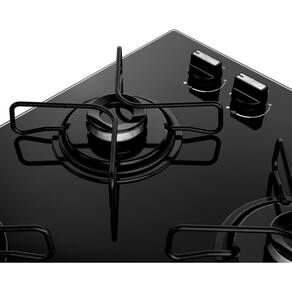 Resumo das caracteristicas e especificacoes: Cooktop a gas, 4 bocas (1 pequena, 2 medias, 1 grande), acendedor automatico, sem timer, portatil, dimensoes de 56,5x46 cm, peso de 8 kg, feito de vidro temperado preto, referencia do produto CD060BEUNA, garantia do fabricante de 12 meses."