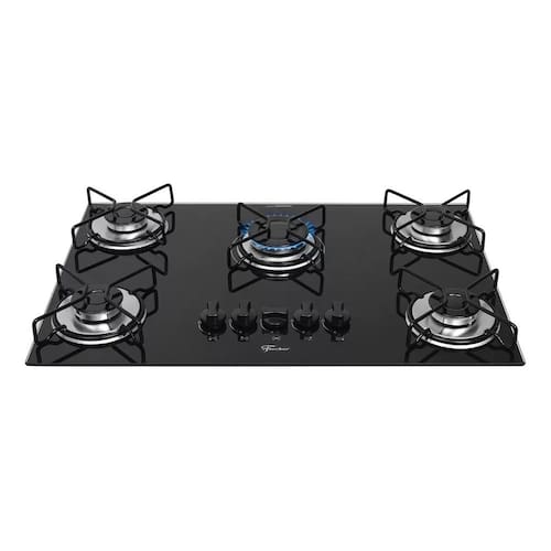 🔸 Cor: Preto 🔸 Número de bocas: 5 🔸 Acendimento: Superautomático 🔸 Funcionamento: Gás 🔸 Consumo de gás: 0,6728 kg/h 🔸 Potências dos queimadores: • 1 rápido – 3.000W • 4 semirrápidos – 1.750W cada 🔸 Classificação energética: A 🔸 Acessórios inclusos: Manual de instruções + 4 tiras de espuma para vedação