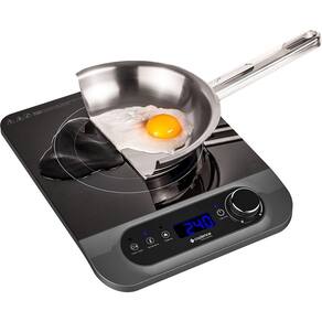 Cooktop por Indução Cadence Perfect Cuisine com controle de temperatura, timer, trava de segurança e superfície de vidro temperado. Aquece diretamente a panela.Luz de calor residual
