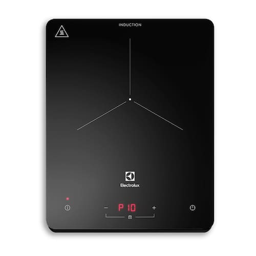 Cooktop portátil Electrolux de 1 boca com sistema de indução, timer ajustável até 180 minutos, superfície de vidro preto resistente a altas temperaturas e fácil de limpar. Ideal para uso doméstico, acampamentos ou viagens.Luz de calor residual