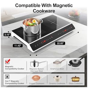 Ampla ampla variedade de Aplicações: O cooktop de indução duplo GIHETKUT é compatível com ferro fundido, ferro, aço eletromagnético, esmalte e aço inoxidável com fundo magnético. Se o ímã grudar no fundo da panela, ela deve ser compatível. O design simples o torna muito adequado para cozinhar em casa e ao ar livre.