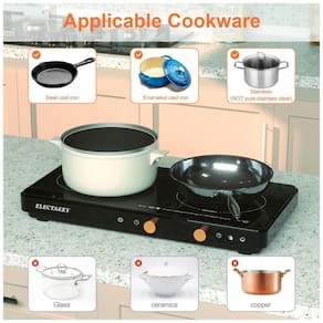 2 em 1 Cooktop de Indução e Chapa de Grelhar: O cooktop portátil com 2 queimadores e chapa de ferro fundido removível pode ser utilizado como substituto para grelhas elétricas internas ou como um queimador de indução independente. Perfeito para fritar panquecas, salsichas, bifes e ovos sem grudar na chapa. Nota Importante: Coloque a panela/caçarola no queimador antes de ligá-lo para evitar erros.