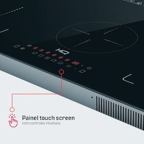 A segurança é um dos destaques do modelo: o Cooktop HQ possui bloqueio infantil, sistema de desligamento automático e sinalizador de superfície quente, que indica quando a área ainda está aquecida após o uso. Tudo isso aliado a um design slim com acabamento sofisticado em vidro preto, que valoriza qualquer tipo de cozinha.