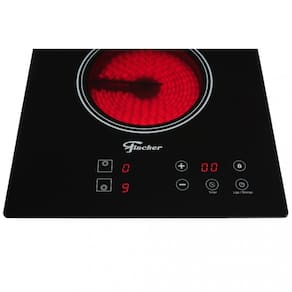 Cooktop Fischer elétrico com mesa vitrocerâmica, painel touch screen, timer de 1 a 99 minutos, 9 níveis de potência e sistema indicador de superfície quente.Luz de calor residual
