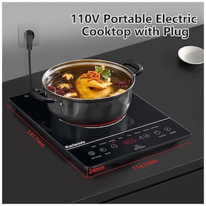 O Cooktop Elétrico Portátil de Um Queimador da Karienvir vem com um plugue de 110V, permitindo que você o mova e o utilize a qualquer momento. Perfeito para espaços pequenos ou uso externo, seu design compacto e plug and play o tornam portátil e fácil de usar. Com 9 níveis de potência e aquecimento eficaz de 1800W, garante aquecimento rápido e uniforme. Possui 8 funções de cozimento, controle por sensor de toque, trava de segurança infantil, timer e alerta de alta temperatura. Compatível com diversos tipos de panelas, como cerâmica, aço inoxidável, ferro e vidro, e sem radiação eletromagnética, garantindo segurança e praticidade.
