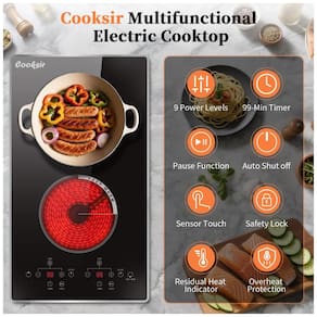 O Cooktop elétrico portátil de 2 bocas da Cooksir é perfeito para famílias na América do Norte, com voltagem de 110-120V. Com design embutido ou de bancada, este cooktop pode ser instalado facilmente, proporcionando praticidade e elegância à cozinha. Possui 2 queimadores de 1400W e 600W, ideais para cozinhar diferentes pratos simultaneamente. Com controle digital, proteções de segurança, timer e trava, este cooktop é inteligente, seguro e multifuncional. Além disso, com borda de metal e vidro preto cristalino, é fácil de limpar e manter, tornando a experiência na cozinha ainda mais prazerosa.