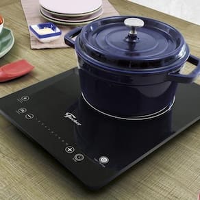 Com dimensões de 29,5x38 cm, esse cooktop é compacto e pode ser levado para qualquer lugar, permitindo que você tenha a experiência completa de cozinhar onde quiser. Sua alimentação é elétrica, com tensão de 220V.