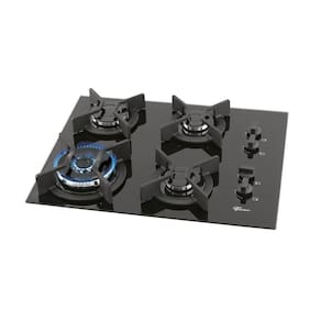Cooktop Fischer 4 bocas com mesa de vidro temperado preto, trempes em ferro fundido, acendimento superautomático e queimador tripla chama. Bivolt.Luz de calor residual