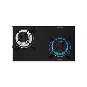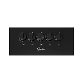 Mesa em vidro temperado preto, trempes de aço esmaltado com acabamento Aramado, queimadores italianos, câmara de gás fechada, design compacto.Luz de calor residual