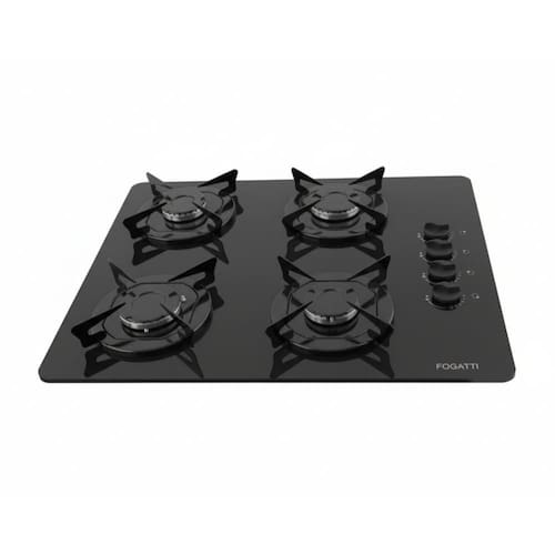 Cooktop Fogatti à Gás Fgt 4b Vidro Preto Flange Esmaltada Preto Bivolt