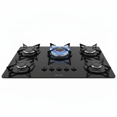 Cooktop Fogatti a Gas FGT 5B TC Vidro Preto Flange Esmaltada - Bivolt