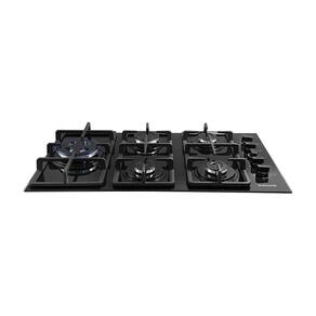 Possui lindo design em vidro temperado na cor preta, e 5 boca com acendimento à gás superautomático e chama tripla lateral.