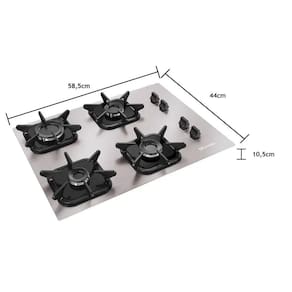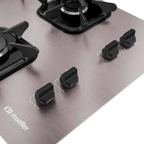 Cooktop Mueller 4 bocas de alumínio com queimador ultra chama, acendimento superautomático e grades em ferro fundido.Alimentação