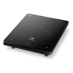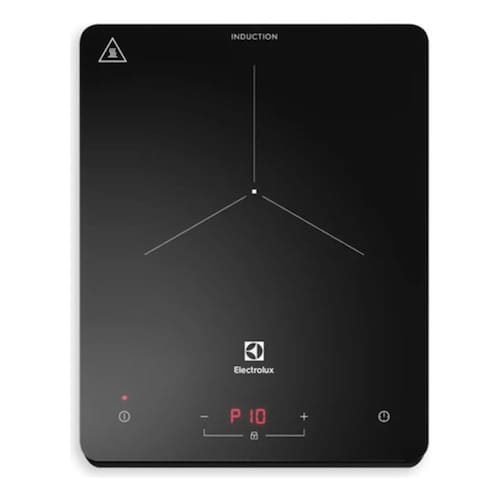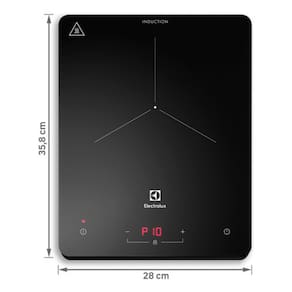 Cooktop portátil de indução Electrolux, design em vidro preto, ideal para uso em diversos ambientes.Luz de calor residual