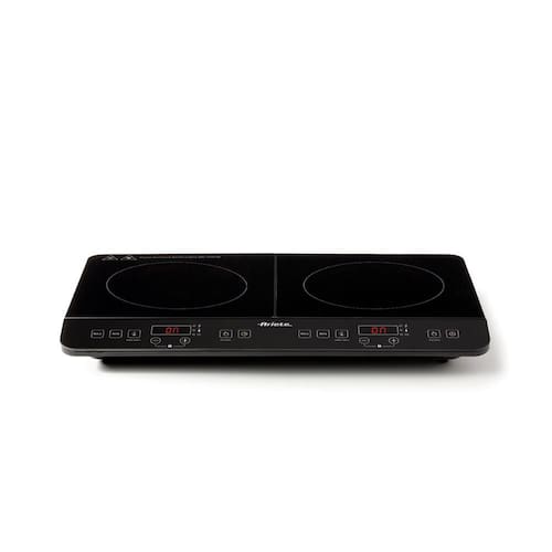 Cooktop portátil por indução Ariete com 2 placas vitrocerâmicas, 10 níveis de temperatura, 6 níveis de potência, timer de até 4 horas, função Keep Warm e segurança infantil.Luz de calor residual