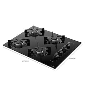 Cooktop Atlas U Top 4 bocas com mesa de vidro temperado, acendimento superautomático, queimadores rápido e semirrápido, trempes em aço esmaltado, manípulos removíveis e eficiência energética A.Luz de calor residual