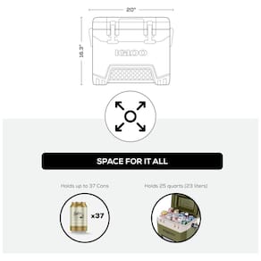 Construção moldada por sopro resistente com base reforçada para maior resistência e proteção. Extremamente durável, mas leve, com retenção de gelo comprovada de 4 a 5 dias. Os inibidores de UV protegem o refrigerador contra danos cas pelo sol para uma vida útil prolongada. Hastes e ferragens de dobradiça de aço inoxidável resistentes à ferrugem proporcionam desempenho estendido. As travas em T grip emborrachadas mantêm a tampa segura Marca: Não Informado