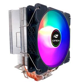 O FC-L110M é o Cooler Fan da C3Tech desenvolvido para processadores. Com 4 heatpipes para dissipar o calor de forma eficiente e ventoinhas que gerenciam o fluxo de ar e a pressão do vento. Possui iluminação vibrante que dá um charme ao seu setup. Instalação sem complicações seguindo os padrões de montagem universal. Se você busca alto desempenho e estilo para o seu setup, o Cooler Fan CPU C3Tech Gaming é a escolha ideal Desenvolvido para garantir resfriamento eficiente e um visual vibrante, ele é perfeito para jogadores e entusiastas que desejam manter suas CPUs em temperaturas ideais, mesmo durante as tarefas mais exigentes. Destaques: Design RGB Multicores: Com efeitos de iluminação RGB dinâmicos, o FC-L110M transforma o visual interno do seu gabinete, criando um ambiente visualmente impressionante e personalizado. Compatível com controladores RGB para sincronização com outros componentes. 4 Heatpipes de Cobre: Equipado com quatro heatpipes de cobre de alta eficiência, este cooler otimiza a dissipação de calor, proporcionando uma transferência térmica rápida e eficaz, mantendo sua CPU sempre resfriada, mesmo em alta performance. Ventoinha de Alto Desempenho: A ventoinha de 120mm oferece fluxo de ar otimizado e operação silenciosa, permitindo que você se concentre no jogo sem ser incomodado por ruídos excessivos. Compatibilidade Ampla: O FC-L110M é compatível com uma grande variedade de soquetes de CPU, incluindo Intel e AMD, garantindo que seja uma solução versátil para diversos setups. Fácil Instalação: Com um sistema de montagem simplificado, a instalação é rápida e prática, sem necessidade de ferramentas complexas, economizando tempo e facilitando o processo de upgrade. Eficiência Térmica para Jogos Intensos: Projetado especialmente para setups gamers, o cooler mantém a temperatura da CPU baixa durante longas sessões de jogo, evitando sobreaquecimento e garantindo máximo desempenho. Especificações Técnicas: Dimensões da Ventoinha: 120mm Velocidade da Ventoinha: 800 - 1600 RPM Fluxo de Ar: 63 CFM Nível de Ruído: 23 dBA TDP Máximo Suportado: 150W Material dos Heatpipes: Cobre Conector: 4 pinos PWM Por que escolher o Cooler Fan CPU C3Tech Gaming Combinando estética de alto nível e desempenho superior, o Cooler Fan CPU C3Tech Gaming RGB oferece um resfriamento eficiente para proteger sua CPU e valorizar o visual do seu setup. Ideal para gamers, criadores de conteúdo e entusiastas de hardware que desejam performance sem comprometer o estilo. ESPECIFICAÇÕES GERAIS