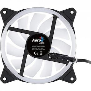 Cooler Fan DUO 12 ARGB AEROCOOL Ventilador de 120 mm com conector de 6 pinos com um design elegante de iluminação de anel LED duplo RGB. Acesse 16,8 milhões de cores usando placas-mãe compátiveis com RGB endereçáveis, incluindo ASUS Aura Sync, MSI Mystic Light Sync e Gigabyte RGB Fusion. Requer placa-mãe RGB endereçável ou hub H66F / H106C . Vem com um cabo adaptador de 6 pinos para conectar sua ventoinha a placas-mãe compatíveis com RGB endereçáveis.