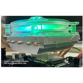Suporta processadores: Intel socket LGA 1156/1155/1150/1151/1366/775 AMD socket AM2/AM3/AM4 Material do dissipador: Aletas de aluminio + 5 Tubos de condução de calor 6mm Peso liquido/bruto: 400g/608g Tipo de rolamento: Hidraulico Tamanho da fan: 12012025mm Rotação: 8001800RPM Volume do fluxo de ar: 58.6CFM Nível de ruído: 2028dBA Tensão nominal/corrente: 12VDC/0.4A Consumo máx. De energia do CPU suportado: 150W