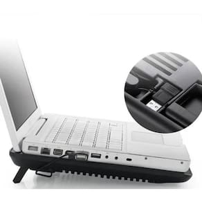 A Base Notebook Ergonômica Refrigeração 15,6 Cooler M19 USB é adequada para laptops de até 15,6 polegadas. Ela vem com um slot na parte de trás para armazenar o cabo USB, mantendo tudo organizado e sem fios soltos. Além disso, a parte inferior da base é levantada e possui almofadas antiderrapantes, o que protege o seu laptop contra escorregões e quedas acidentais. Adquira já a sua e tenha um dispositivo sempre resfriado e protegido!