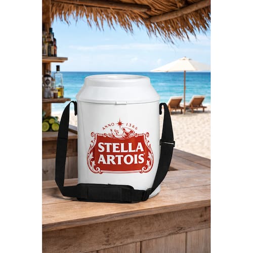 O Cooler Térmico Stella Artois Anabell foi pensado para quem valoriza praticidade sem abrir mão de elegância. Com capacidade ideal para 24 a 30 latas, ele é perfeito para encontros menores, praia, piscina ou aquele happy hour improvisado, sempre mantendo suas bebidas geladas e bem armazenadas.