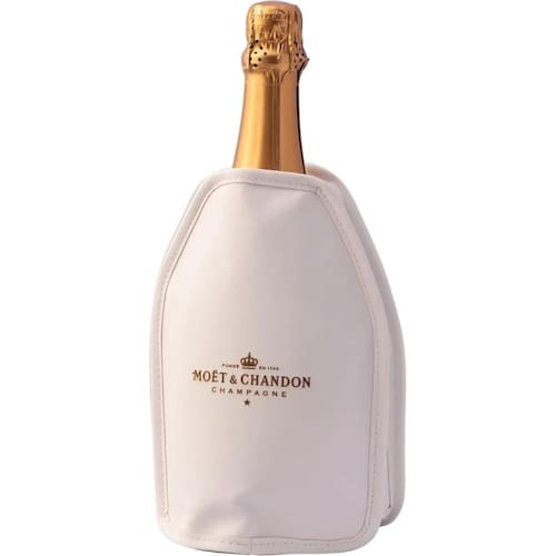 País: Brasil Tipo: Cooler térmico Cor: Branca, com logo da Moet Chandon Capacidade: Uma garrafa de 750ml Material: Poliéster
