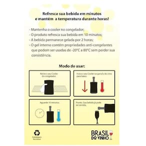 Modo de usar: mantenha seu coller no freezer/congelador por no mínimo 12 horas. Após este tempo, retire-o e coloque a garrafa de sua bebida dentro dele.