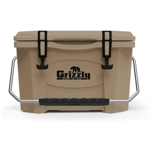 Rotomoldado Nossos refrigeradores são feitos de plástico LLDPE moldado rotacionalmente e são projetados para atingir espessuras de parede uniformes para durabilidade ideal Propriedades térmicas Todos os coolers de lado rígido são injetados sob pressão com até duas polegadas de espuma de poliuretano Ecomate para resfriamento ideal. Este isolamento exclusivo não tem potencial de aquecimento global, nenhum potencial de destruição do ozônio e é feito sem VOCs. Junta da tampa Nossas tampas vedam com uma junta de borracha para manter o ar frio preso, prolongando a longevidade do seu gelo. Certificação Interagency Grizzly Bear Committee IGBC Todos os coolers rígidos Grizzly são certificados IGBC e resistentes a ursos. Cada cooler hardside também vem com dois orifícios de trava para manter seu cooler e seu conteúdo Marca: Não Informado